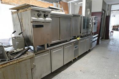 Vendo cucina professionale completa, ideale per ristoranti, pizzerie, gastronomie o laboratori di cucina. Tutti i macchinari sono in acciaio inox e in buone condizioni generali.