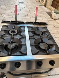 Cucina professionale a gas, 4 fuochi e forno, perfettamente funzionante