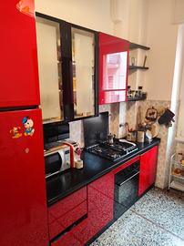 Vendo cucina completa colore rosso lucido con struttura nera, in buone condizioni. La cucina è funzionale e pronta all’uso, composta da: mobili base e pensili piano cottura a gas forno lavello lavastoviglie Design moderno e compatto, ideale per appartamenti, case vacanza o affitti. 📏 Dimensioni: Mobile lavabo dimensioni : 128 h. 9 e pensili 105 h. 95 + pensile ad angolo 35*35 Mobile frigo: 60 cm x 230 h x 60 cm profondità+ piano cucina e cottura: 210 cm + Pensili h 90*90 cm larghezza + cappa 60 cm profonda * h 80 cm tavolo 80*90 apribile a portafoglio con 4 sedie 📍 Zona: Roma Monteverde ✔️ Condizioni buone, normali segni di utilizzo ✔️ Tutto funzionante ✔️ Disponibile da inizio giugno ⚠️ Smontaggio e trasporto a carico dell’acquirente Prezzo trattabile. Contattami in privato per informazioni o per vederla.