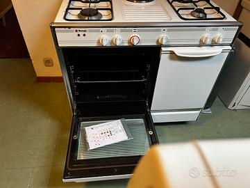 La parte inferiore comprende un forno a elettrico con grill sulla sinistra e un pratico vano porta-bombola (o vano ripostiglio) sulla destra, protetto da un'anta.