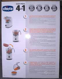 Cuoci Pappa Easy Meal 4 in 1 per preparare pappe sane e nutrienti durante tutto il periodo dello svezzamento, in modo facile e veloce, cuocendo a vapore e omogeneizzando. Inoltre riscaldare e scongelare pappe già pronte.