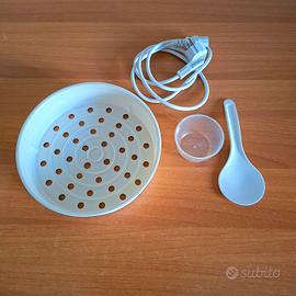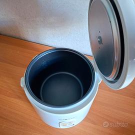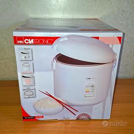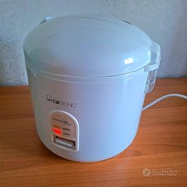 Cuociriso bollitore Clatronic RK2925. Ideale per preparare riso e altri alimenti al vapore. Preparazione semplice e conservazione della temperature per tutti i tipi di riso senza bruciare. - Coperchio isolante a scatto con manico. - Pentola estraibile antiaderente. - Capacità massima 5 litri per 1250g di riso. - Funzione mantieni in caldo. - Accessori inclusi: cestello per cottura a vapore, misurino e spatola. - Cavo di alimentazione. - In omaggio formine per preparare sushi hosomaki e onigiri. In perfette condizioni, come nuovo.