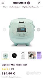 Cuociriso automatico Reishunger Mini, usato solo due volte, in condizioni eccellenti, perfettamente funzionante e pari al nuovo. Ideale cuocere in modo automatico 1-3 porzioni di riso, grazie al formato compatto e alla semplicità d’uso.