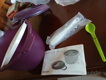 Cuociriso in plastica, da usare per il microonde di Tupperware. Colore viola. Originale, nuovo, mai usato, tirato fuori dalla confezione per scattare la foto, con accessori. Consegno a mano su Roma o spedisco.