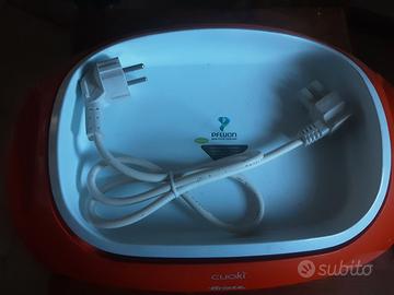 Cuokì e' la nuova griglia da tavola portatile dotata dell’innovativa piastra in ceramica per una cottura dei cibi veloce e salutare che, grazie al cavo removibile e ai pratici manici, puo' essere comodamente portata in tavola come vassoio colorato e di design. La piastra in ceramica, che assicura una perfetta cottura mantenendo inalterate le proprieta' dei cibi, e' estraibile e puo' essere facilmente pulita e messa in lavastoviglie. Cuokì Arancione e Bianco Griglia da Tavola Elettrica 73400 di Ariete completo di cavo di alimentazione Potenza 700 watt Peso articolo1,35 Kg Larghezza 370 mm Profondità 245 mm Altezza 85 mm Piastra Rettangolare Interrutore On/Off sì Tensione230 Volt