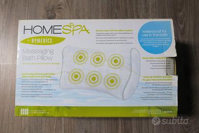 Cuscino massaggiatore impermeabile HoMedics, NUOVO, mai utilizzato e ancora nella confezione originale, aperta solo per fare le foto dell’annuncio. Perfetto per rilassarsi durante il bagno. Si applica facilmente al bordo della vasca e permette un piacevole massaggio per testa e collo.