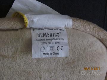 Cuscino massaggiante shiatsu HOMEDICS perfettamente funzionante per massaggi cervicale- schiena- spalle- gambe, doppia rotazione, funzione calore, copri cuscino removibile, comandi touch control, tessuto in velluto, alimentazione 220V - 50Hz