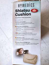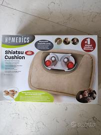 Vendo, causa doppio regalo, cuscino SHIATSU marca HoMEDICS, nella sua confezione originale provvista anche di istruzioni all'uso. Efficace, consente di dare sollievo a muscoli affaticati/tesi grazie ad un movimento circolare termico che simula l'azione rotatoria dei pollici tipica del massaggio shiatsu, Ha fodera soft rimovibile e lavabile, è provvisto sul retro di cinghia regolabile per meglio fissare ed aderire a collo (cervicale), spalle/scapole, schiena (lombare) e piedi (pianta).