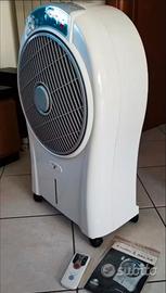 Vendo Cyclone Enjoy and relax 998 raffrescatore evaporativo completo di telecomando e libretto istruzioni. Acquistato l'estate scorsa e utilizzato un paio di volte poi messo da parte per l'istallazione di condizionatori. Vendo per inutilizzo a 65 euro leggermente trattabili (non spedisco)CARATTERISTICHE: 3 velocità, 3 programmi di ventilazione a flussi variabili, funzione ionizzante, funzione di raffrescamento grazie a 2 panetti di ghiaccio inclusi è possibile aumentare l' effetto raffrescante ,non necessita di tubazioni per il funzionamento Rotelle piroettanti con sistema di blocco, flusso d' aria 900 m3/hr Pannello soft touch e telecomando , grande portata d' aria con possibilità di rotazione automatica del diffusore per un flusso multidirezionale 1 Raffrescatore, 1 telecomando, 2 ice box, 1 libretto istruzioni Colore: Grigio/Bianco; Dimensioni prodotto: 24 x 43 x 73.5 cm; Peso: 5 Kg; : 80 watt