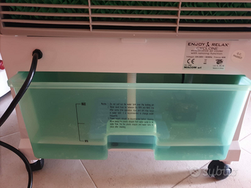 Innovativo raffrescatore evaporativo ad acqua con funzione ionizzante che permette di ottenere aria fresca e pulita in qualsiasi ambiente. Grazie ai due panetti di ghiaccio inclusi è possibile aumentare l'effetto raffrescante. Grande portata d'aria con possibilità di rotazione automatica del diffusore per un flusso multidirezionale. Pannello soft touch e telecomando per selezionare le funzioni desiderate. Tre diverse velocità fisse e tre diversi programmi di ventilazione a flussi variabili. Funzione ionizzante. Funzione di raffrescamento. Programmabile per uno spegnimento automatico. Non necessita di tubazione per il funzionamento raffrescante. Rotelle piroettanti con sistema di blocco che consentono di trasportarlo e posizionarlo ovunque in tutta sicurezza.