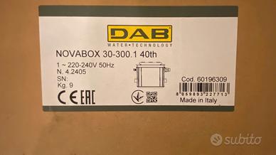 Novabox 30/300 è una stazione di sollevamento con un contenitore di raccolta da 30 litri. Una pompa sommergibile automatica (DAB Nova 300) viene posizionata in questo contenitore, il che assicura che il contenitore venga automaticamente svuotato non appena si riempie.