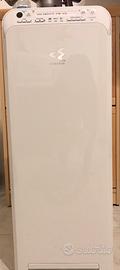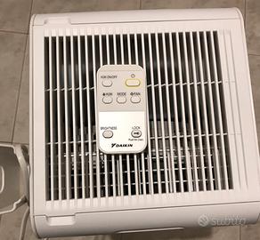 Motivo cessione: doppio regalo disponibile scontrino fiscale per garanzia 2 anni-imballaggio originale DAIKIN MCK55WVM Purificatore d'Aria (polline, polveri sottilicon Funzione di Umidifcazione e Telecomando. Unità mobile con ruote orientabili. I purificatori MC55W e MCK55W di Daikin, dal design elegante e compatto, garantiscono aria pura grazie alle scarica di plasma ionizzato e alla tecnologia Flash Streamer per ambienti fino a 82 metri quadrati. Il loro sistema di filtrazione all'avanguardia è composto da 3+1 filtri: il prefiltro cattura le particelle di maggiori dimensioni; il filtro HEPA elettrostatico ad alte prestazioni (unico nella sua categoria), che ha una durata media di circa 10 anni, impedisce l'intasamento della maglia che cattura gli agenti inquinanti fino al 99,97% di PM0,3 (8 volte più piccolo del PM2,5); il filtro deodorizzante catalitico (fornito sigillato nella confezione da montare nell'apparecchio) cattura ed assorbe gli odori senza saturarsi (a differenza dei filtri ai carboni attivi) e quindi non dovrà mai essere sostituito; il filtro umidificatore (solo nella versione con umidificatore MCK55W) elimina i batteri nel serbatoio dell'acqua grazie alla cartuccia agli ioni d'argento. Utilizzare i purificatori Daikin è estremamente semplice: con la modalità AUTO l'aria di casa resta sempre pulita e monitorata! Il triplo sensore (polvere, odori e PM2,5), infatti, rileva in ogni momento la presenza di particolati e impurità e se necessario attiva automaticamente i depuratori d'aria per rimuoverli. ULTRASILENZIOSI I purificatori Daikin sono pressochè impercettibili all'udito e risultano ideali per essere utilizzati anche nelle ore notturne (grazie anche allo spegnimento facoltativo dei LED). La loro emissione sonora, infatti, è pari a 19dB(A) e risulta inferiore a quella percepibile in una biblioteca particolarmente silenziosa. i purificatori Daikin consumano, nella modalità AUTO, solo 8 Watt per ora (una lampadina ne consuma 40 in un'ora).