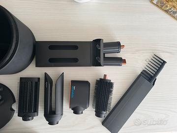 7 accessori inclusi. Un chip RFID comunica con Dyson Airwrap Coanda e consente al dispositivo di regolare immediatamente la temperatura e il flusso d'aria in base alle impostazioni ottimali consigliate per ogni accessorio. Più leggero in mano. Il nostro multi-styler e asciugacapelli più intelligente è anche il più leggero. Per un maggiore controllo e una migliore maneggevolezza. Sette sensori per uno styling più intelligente e migliorato. I nuovi sensori consentono il riconoscimento intelligente degli accessori, lo styling automatico e impostazioni personalizzabili. Per un'esperienza di styling ottimizzata. NOVITÀ: Acconciature lisce con l'accessorio AirSmooth. Due potenti flussi d'aria si incontrano ed esercitano una tensione sufficiente sulle singole ciocche di capelli per donare morbidezza ai capelli, domarli e ridurne il volume. Per creare acconciature più lisce, con l'aria. Dimensioni (altezza x lunghezza x larghezza) Prodotto: 26,2 cm x 4,4 cm x 3,8 cm Scatola: 16,5 cm x 38 cm x 18,4 cm Peso del prodotto: 0,41 kg* Scatola: 1,83 kg Potenza 1700 W Flusso d'aria 14 l/s 3 livelli di velocità (bassa, media, alta) 4 livelli di temperatura e pulsante per l'aria fredda (28 °C) Incluso nella confezione: Accessorio per riccioli Co-anda2x da 30 mm Accessorio per riccioli Co-anda2x da 40 mm Spazzola Co-anda2x per uno styling delicato Spazzola volumizzante rotonda Co-anda2x Accessorio Co-anda2x per asciugatura rapida Accessorio AirSmooth2x Custodia di presentazione 2 anni di garanzia su materiali e lavorazione Per maggiori info e foto contattate al 3381818431 nuvo utilizzato non piu di 5 volte ancora in garanzia come da scontrino allegato vendo per initilizzo .