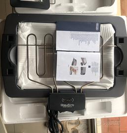 De'Longhi BQ80 Barbecue Grill Elettrico con Griglia e Bistecchiera, Doppia Griglia, Doppia rotazione, impugnatura termoisolante, interruttore di sicurezza, vassoio antigoccia, facile da pulire,Grigio.