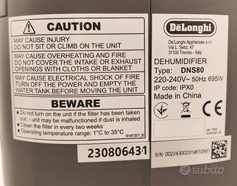 Deumidificatore De'Longhi Tasciugo AriaDry Light DNS 80 Condizioni Perfette Piccolo e potentissimo Prezzo: €200 Il DeLonghi DNS 80 è l'alleato ideale contro l'umidità, superiore ai modelli standard grazie alla tecnologia a Zeolite. Punti di Forza & Vantaggi: Efficienza a basse temperature: A differenza dei modelli a compressore che si bloccano sotto i 15°C, questo dispositivo garantisce prestazioni massime e costanti anche in ambienti freddi (fino a 1°C). Perfetto per taverne, cantine o stanze poco riscaldate Ottimo x asciugare muri pieni di acqua . Copertura Ottimale: Ideale per ambienti fino a 80 metri cubi (circa 30-35 m²). Silenzio Assoluto: Solo 34 dB, il compagno perfetto per la zona notte. Funzione Laundry: Asciuga il bucato in metà tempo, eliminando l'odore di chiuso. Aria Purificata: Ionizzatore e filtro antibatterico per rimuovere polvere e allergeni. Display LCD Touch: Interfaccia moderna e intuitiva. Compattezza: Leggero e facile da spostare con maniglie a scomparsa. Scarico: Tanica da 2,8L con arresto automatico Funzione scarico continuo.