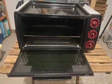 De Longhi Sfornatutto EO 1455: 2 funzioni di cottura avità interna in “Durastone”, Grande capacità per poter cuocere comodamente anche la pizza fino a 30cm di diametro, Profondo cassettino raccoglibriciole estraibile per una facile pulizia, Timer 120 minuti con spegnimento automatico e segnale acustico di fine cottura, Manopole in materiale “soft-touch”, Termostato regolabile Accessori: grigliatutto dietetico, griglie con impugnatura, leccarda in alluminio. Usato ma perfettamente efficiente e funzionante. Consegna a mano su Bressanone.