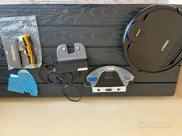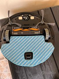 Vendo robottino lavapavimenti della ecovacs funzionante ed in ottime condizioni lo vendo x mancato utilizzo come si vede in foto ha una spazzola centrale un tappetino ed un filtro di scorta unica pecca se vogliamo chiamarla pecca e la maniglia della vaschetta di raccolta briciole e polveri che e rotta da un lato ma non comporta nulla nella funzionalità