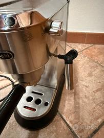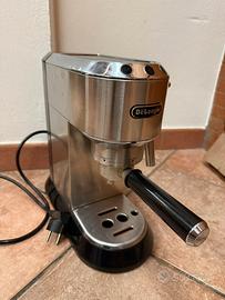 Macchina da caffè DeLonghi Dedica in buone condizioni e perfettamente funzionante. Presenta solo la rottura di un anello dello sportello serbatoio acqua (come in foto), sigilla e si apre comunque. Compreso di accessori manicotto per cialda o caffè. Per info chat