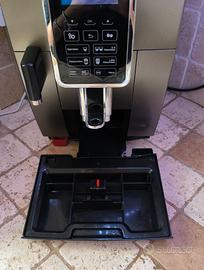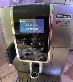 Macchina per caffè espresso DeLonghi Dinamica Aroma Bar con schiuma latte incluso. Tipo di prodotto : Macchina per espresso Tipologia di caffè utilizzato : Chicchi di caffè, Caffè macinato Tipologia macchina del caffé : Automatica Vaschetta per caffè preparato : Tazza Bevanda multipla : Sì Preparazione di cappuccino : Sì Preparazione di caffè : Sì Preparazione di latte macchiato : Sì Preparazione di latte caldo : Sì Colore del prodotto : Argento/Nero Tipo di controllo : Touch Display incorporato : Sì Tipo di display : LCD Potenza : 1450 W Larghezza : 236 mm Profondità : 429 mm Altezza : 348 mm Peso : 9,5 kg Pressione pompa : 15 bar Macchina in ottime condizioni, tenuta in maniera impeccabile, con regolari cicli di decalcificazione.
