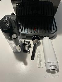 Macchina per caffè De Longhi ECAM 220.91.B Ottime condizioni. Piccola imperfezione nello sportello del caffè macinato che non pregiudica il buon funzionamento. Compresi tutti gli accessori, ugello acqua calda, lattecream, dosadore caffè macinato, filtro per acque dure e prova durezza acqua. Decalcificata. La macchina, durante il trasporto, nonostante sia stata igenizzata e pulita può rilasciare polvere di caffè.