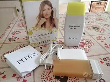 Kit per depilazione con cera liposolubile, contiene scaldacera elettrico, due rulli di cera, 10 strisce per la depilazione, libretto di istruzioni, nuovo, mai usato, in confezione originale
