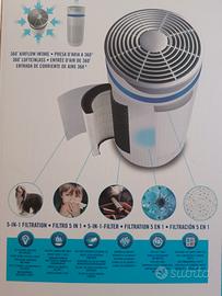 purificatore d'aria 5 in 1,uccide germi e batteri,riduce gli odori,rimuove gli allergeni,timer di spegnimento automatico,potenza 65W,silenziosissimo 3 velocità,purifica una camera 84M quadri/H...vendo nuovo regalo inutilizzato