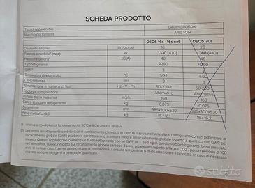 Deumidificatore ambiente modello ariston DEOS 16S. Usato ma in condizioni eccellenti, come appena acquistato.