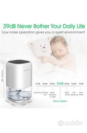 Basso consumo energetico e funzionamento silenzioso: durante il funzionamento, questo deumidificatore produce circa 39 dB, in modo che la macchina possa funzionare tutto il giorno senza rumori forti o fastidiosi.