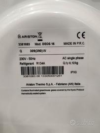 Deumidificatore portatile Ariston Deos 16 colore bianco e grigio come da foto, dal design compatto. Le misure sono di 336 x 507 x 230 mm. Usato pochissimo per deumidificare la mansarda.