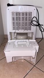 È dotato della funzione “air clean” per purificare l’aria grazie a particolari filtri, facilmente lavabili con acqua e i carboni attivi inoltre deumidifica e asciuga.