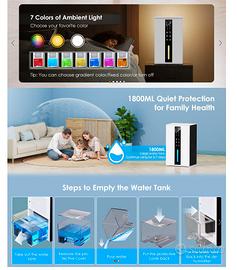 Deumidificatore Casa con 1800ml, Deumidificatore Casa Muffa con Modalità Sospensione e Timer 6-48 Ore, Controllo Umidità Auto (≥50% RH),Sbrinamento Auto & Spegnimento, Luci LED a 7 Colori(Versione I)