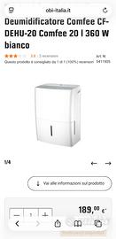 Vendo deumidificatore Comfee CF-DEHU-20 completamente nuovo, mai utilizzato. Aperto solo per controllarlo, condizioni perfette. ✔ 20 litri/24h (molto potente) ✔ Ideale per ambienti fino a circa 50 m² ✔ Serbatoio da 3 litri ✔ Modalità automatica e continua ✔ Timer e regolazione umidità ✔ Possibilità di scarico continuo ✔ Silenzioso e facilissimo da spostare Perfetto per eliminare umidità, muffa e cattivi odori in casa. Prezzo nuovo in negozio: 140–190€ 💰 Vendo a 110€ trattabili 📍 Ritiro a Trieste centro (stabile munito di ascensore) Vendo perché doppio acquisto/inutilizzato.