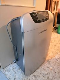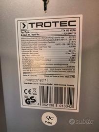 I programmi del TTK 110 HEPA: Deumidificazione automatica: Il grado di umidità desiderato è regolabile in 5 fasi tra il 40% e il 70%. Al raggiungimento del valore desiderato, il deumidificatore si spegne automaticamente. Deumidificazione forte : prestazioni ottimali di deumidificazione per limitare costantemente l'umidità. Asciugatura non-stop degli edifici e valido aiuto per l'asciugatura della biancheria. Deumidificazione leggera : deumidificazione dell'aria minima ma continua. -Protezione contro il traboccamento -Modalità non-stop collegato ad una pompa per la fuoriuscita continua dell'acqua -Dispositivo 2-in-1 integrato per la deumidificazione e la depurazione dell'aria al 99,97% di depurazione efficace da polline, acari della polvere, spore di asperigillus e altri allergeni grazie al filtro HEPA o quello a carboni attivi -Display digitale con indicazione dell'umidità relativa -Funzione swing per una distribuzione dell'aria da diverse angolazioni -Prefiltro (ricambiabile) per sporco ostinato come peli d'animale, pelucchi e polvere -Funzione sleep (silenzioso) -Funzione autopulente per un deposito dell'apparecchio senza problemi -Ventilatore a due velocità -Comoda impugantura per il trasporto integrata Dati tecnici : Capacità di deumidificazione max: 40 Litri/24h Portata d'aria max.: 260 m³/h Adatto per ambienti non superiori a: 120 m² / 300 m³ Intervallo di funzionamento (temperatura): 5 - 32 °C Intervallo di funzionamento (umidità): da 30 a 80 % di umidità relativa Tensione di connessione: 230 V / 50 Hz Potenza max. assorbita: 0,52 kW Contenitore dell'acqua: 6 litri Rumorosità (a distanza di 1 m): 46 dB (A) Dimensioni (Lungh x Largh x Alt): 265 x 410 x 665 mm Peso: 18 kg