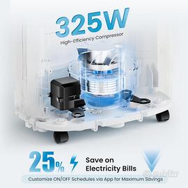 Compressore a risparmio energetico e timer 24h : Grazie al compressore ad alte prestazioni da 325W, questo deumidificatore rimuove l'umidità rapidamente ed efficientemente, riducendo i consumi energetici. Usa il timer 24 ore per adattare le impostazioni e risparmiare energia.