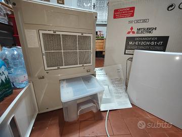 Mitsubishi Deumidificatore portatile MJ-E12CH specifiche: Deumidificatore Leggero e compatto silenzioso con scarico a condensa continuo, Filtro aria ad alta efficienza, Possibilità di orientare i deflettori dell'aria, Timer e funzione di asciugatura continua del bucato,Funzione di auto-asciugatura interna che consente di eliminare la proliferazione delle muffe e dei cattivi odori all'interno del deumidificatore, Speciale filtro ad alta efficienza è in grado di rimuovere pollini e minuscole particelle di polvere ed altri inquinanti normalmente presenti negli ambienti domestici.