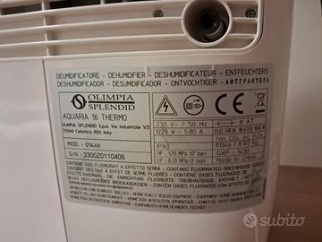 Causa inutilizzo vendo deumidificatore Olimpia Splendid Aquaria 16 Thermo di 5 anni (comprato a ottobre 2020).