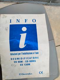 vendo deumidificatore portatile marca Electrolux, perfettamente funzionante. con vaschetta raccogli acqua.