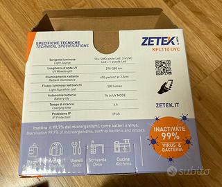 Zetek è un marchio ZECA, azienda italiana leader del settore. L’efficacia della LAMPADA KFL-UVC è stata testata in laboratorio TEST REPORT TÜV RHEINLAND 28119906-001