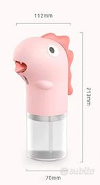 Dspenser Sapone Automatico per Bambini Liquido in Schiuma NUOVO, CONFEZIONATO. Disponibile ROSA e VERDE Erogatore per le Mani da Bagno e Cucina Distributore Senza Contatto con Sensore a Infrarossi Funzione Anti Perdita, Impermeabile e Regolabile. DISPENSER AUTOMATICO DI SAPONE SENZA CONTATTO PER BAMBINI A FORMA DI DINOSAURO: Tecnologia di rilevamento a infrarossi senza contatto. Avvicinando la mano il sapone viene erogato automaticamente. Il funzionamento senza contatto consente un'erogazione del sapone semplice e igienica. ALIMENTATO A BATTERIA: Il distributore di sapone liquido utilizza 3 batterie AAA (Non incluso); non è necessario caricare e installare; facile da usare. La batteria ha una durata di circa 4000 erogazioni. Indicatore di bassa potenza di alimentazione LED di colore rosso posizionato sulla parte superiore della macchina. GRANDE CAPIENZA: Il distributore di sapone ha una notevole capacità di 350 ml; la bottiglia trasparente consente sempre di verificare il sapone liquido all'interno per il necessario riempimento.