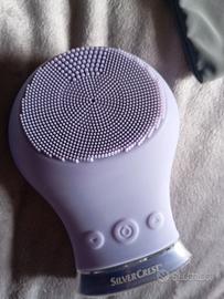 dispositivo vibrante per la pulizia del viso con due superfici diverse: una specifica per la pulizia e l' altra sul retro per massaggiare. 5 diverse velocità d vibrazione regolabile coi tasti "su" e "giù".