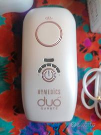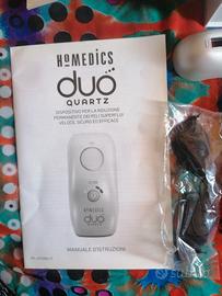 Articolo Homedics DUO QUARTZ per la riduzione dei peli superflui tramite luce pulsata, perfetto, mai usato, come in foto in scatola originale, comprensivo di carica batterie, placca per zone piccole, occhiali protettivi e manuale d istruzione. Nell ultima foto c' è la spiegazione della tecnologia utilizzata dall apparecchio in dettaglio. Prezzo trattabile