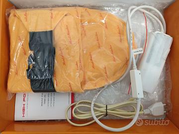 Dispositivo con fascia indossabile riscaldante per spalle, collo e schiena. Perfettamente funzionante. Confezione completa con sacchetti e protezioni originali.