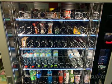 Vendesi per cessata Attività due Distributori Automatici, Uno per bevande calde con dispositivo per macinare il caffè in chicchi, L’altro refrigerato con due zone differenziate di temperatura per la vendita di bevande fresche e snack vari con lettore di tessere sanitarie incluso