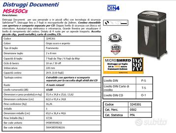 vendo distruggi documenti fellowes MS450Cs, usato. ritiro in loco. non spedisco