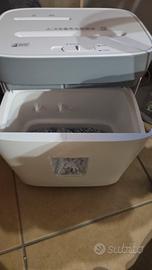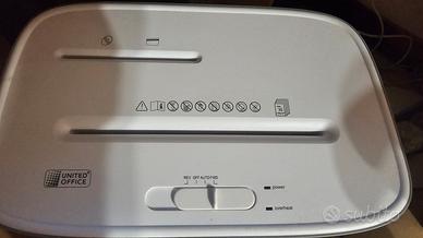 Praticamente nuovo (usato due volte), vendo questo distruggi documenti modelli United Office. È capace di triturare fino a 10 fogli contemporaneamente e possiede anche un particolare ingresso per distruggere DVD/CD e tessere plastificate. Sminuzza tutto in piccoli coriandoli. Serbatoio di grande capacità facilmente estraibile. È dotato di 4 ruotine per un più facile spostamento. Altezza da terra circa 45cm Larghezza 35cm Visto il peso, circa 3/4 kg e le dimensioni del pacco preferibikei consegna a mano zona FERRARA. Spedizione comunque disponibile ai costi applicato dalla piattaforma.