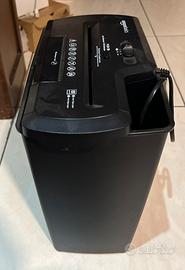 Vendo distruggidocumenti 8 fogli, taglio a striscioline, con funzione distruggi CD e carte di credito. Usato pochissimo. In perfetto stato.