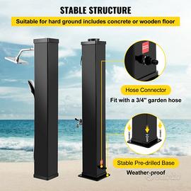 Doccia Riscaldata a Energia Solare Materiale in PVC ABS Cromato a Colore Nero, Doccia Solare a 2 Colonna di Doccia capacità 40 Litri, per Giardino, Cortile, Spiaggia, Spa a Bordo Piscina, ECC. · Grande Capacità d'Acqua: la nostra doccia riscaldata dal sole può contenere 40 litri d'acqua. Un grande serbatoio dell'acqua (7' di altezza) può soddisfare le tue esigenze quotidiane. È inoltre dotato di un ingresso dell'acqua per il collegamento con il tubo da giardino (deve essere bloccato).