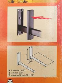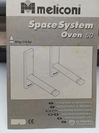 SPACE SYSTEM OVEN 50 MELICONI - SUPPORTI DA MURO PER FORNO MICROONDE O FORNETTO ELETTRICO. MAI USATO, CON IMBALLO ORIGINALE E COMPLETO DI MANUALE. SOSTIENE FINO A 50 KG E PUO' ESSERE ESTESO DA 30 CM A 46 CM CIRCA.