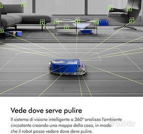 Navigazione visiva a 360° per mappare e pulire in modo intelligente.
