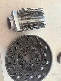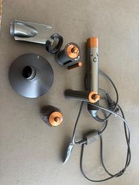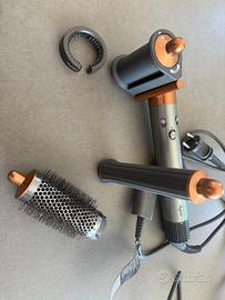 Multistyler Dyson airwrap origin colore nichel/rame completo di: - pre-styler lisciante Coanda per asciugare i capelli ed eliminare l’umidità sfruttando l’effetto Coanda per rimuovere i baby Hair - cono lungo da 20mm per creare onde e ricci morbidi in entrambe le direzioni - spazzola volumizzante tonda - spazzola pulizia filtro Inclusi accessori extra: - spazzola lisciante forte per creare styling liscio su capelli tendenti al crespo, sfruttando effetto Coanda - diffusore per dare forma a onde e ricci naturali (pezzo sempre esaurito sul sito… difficilmente trovabile)